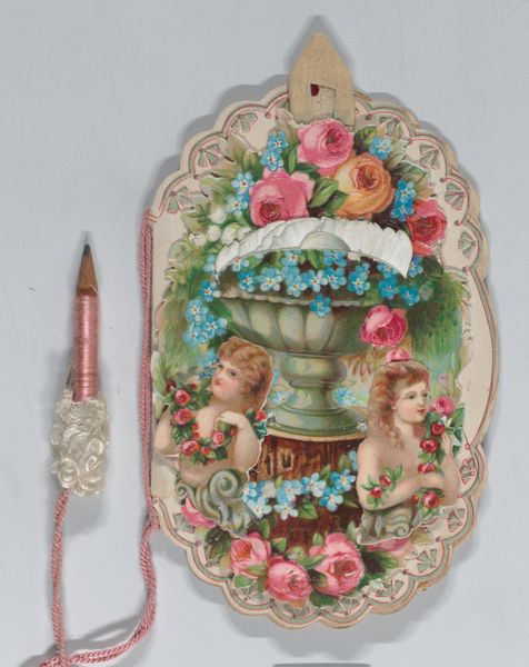 This small, anonymous Valentine from the Met collection speaks volumes about the sentimental culture of its time. Probably made in Europe or the United States, these cards were popular during the Victorian era. The image creates meaning through a dense layering of romantic visual codes. Children frolic in an idealized landscape of flowers, while cherubic angels hover above, bearing 'Love's offering'. Beneath, we read 'With love as pure as morning dew'. The overall effect is one of innocence, tenderness, and delicate beauty. But this Valentine is also a commodity, produced and consumed within a rapidly industrializing society. Its intricate design and mechanical elements would have been enabled by new technologies of printing and manufacturing. While ostensibly expressing personal sentiment, it also reflects broader social norms and expectations around courtship, gender roles, and the commercialization of emotion. By researching popular culture, social history, and the material culture of love, we can gain a deeper understanding of this small but culturally significant object.