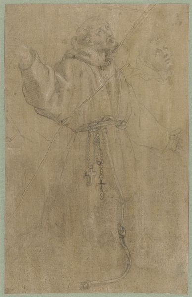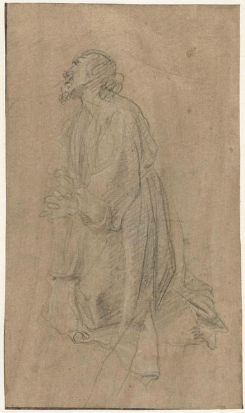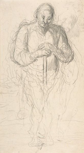 Curator: Here we have George Hendrik Breitner's "Two Studies of a Man, Possibly Museum Director Adriaan Pit," created between 1884 and 1886. What's your initial response to this sketch? Editor: It feels incredibly intimate, like stumbling upon a private moment in the artist's process. The spare use of pencil on toned paper gives it a vulnerability, as if it's whispering a secret about the sitter's interior life. Curator: It's intriguing to consider this within the context of 19th-century Dutch society. Breitner was known for capturing everyday life, often focusing on the working class and marginalized communities. How does this study, potentially of a museum director, fit within that narrative? Does it challenge notions of social hierarchy and artistic representation? Editor: Absolutely. The material execution feels crucial here. This isn't a grand, formal portrait commissioned for display. It’s a quick, unassuming sketch, almost utilitarian in its purpose. This lends itself to discussions of class – artmaking for whom and about whom? Is this rendering of Pit in a personal sketchbook subverting his public role through an accessible medium? Curator: The work highlights the power dynamics inherent in representation. Pit, as a director, would have held significant influence over the art world, and Breitner, through this seemingly informal sketch, engages in a dialogue about status, power, and the act of observation. Could it be seen as a subtle commentary on the elite and their relationship to the artist? Editor: It’s precisely that understated quality, the seeming casualness of the medium, that allows for such an incisive reading. Breitner has chosen to forego grand material gestures and expose labor and the production of this drawing in favor of intimacy and a shared context between artist and sitter. Curator: Considering Breitner's overall body of work and his interest in capturing fleeting moments, this piece really gives insight into the artist's process and the nuanced power dynamics that he was navigating. Editor: Yes, stepping back, this work demonstrates that careful consideration of artistic material and its implicit biases allows one to understand how works interact and perform within social strata and how that can affect even their representation of the elite.