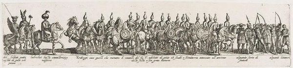 Editor: Here we have Antonio Tempesta's "Procession of the Pope to St. John Lateran," made sometime between the late 16th and early 17th centuries. It's a small print, but packed with figures. What can you tell me about the social context of such a piece? Curator: It's fascinating how Tempesta uses printmaking to disseminate this image of papal authority. Consider the political climate; the papacy was keen to project power, especially after the Reformation. How does this imagery serve that purpose? Editor: I see it! The sheer number of figures emphasizes the Pope's importance, and the procession itself becomes a spectacle of power. Curator: Exactly. This print isn't just a record, it's a piece of political theater, circulated for a specific social impact. It makes me wonder, who was the intended audience? Editor: That’s a great question. I hadn't considered how deliberately this image was crafted for public consumption and political influence. Curator: And that's the power of art history—to uncover these layers of meaning!