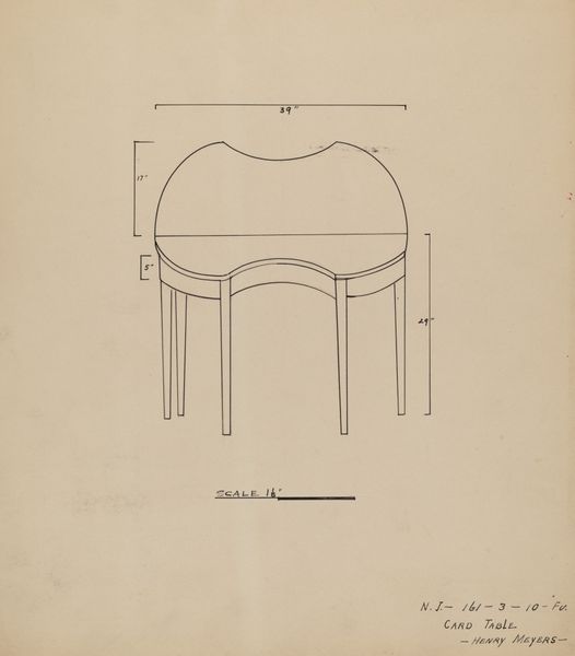 This technical drawing of a silver table was created by Richard Schoene, sometime around 1934. Architectural drawings like this are fascinating because they give us a window into the history of design and production. Here, we see the careful attention to detail, with precise measurements and multiple views of the table. The drawing, probably commissioned by Meyer Goldbaum, speaks to the intersection of artistic skill, economic demand, and the cultural values placed on objects of both utility and beauty. It could have been made for different reasons: to document an existing object, to guide future production, or simply as an exercise in technical skill. To understand this drawing fully, we might investigate design trends in the 1930s, or explore the history of furniture making. We can use primary sources such as trade catalogs and archival documents to better understand the object.