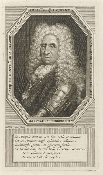 Aert Schouman created this portrait of Willem VIII, Landgrave of Hesse-Kassel in armor using pen, gray ink, and gray wash. Schouman was active during a time when the Dutch Republic was transitioning from its Golden Age. Portraits like this one were more than mere likenesses; they were carefully constructed statements of power and status. Willem's armor, for instance, speaks to a martial identity, a deliberate choice during a period of shifting European alliances and conflicts. The artifice of the wig, the stern gaze, and the oval frame, serve to distance Willem from the everyday. However, this portrait also captures a moment of personal presentation, in which Willem can be seen as choosing to project an image that aligns with his own sense of self and the role he wished to play on the European stage. It's a balancing act between personal identity and the demands of leadership.
