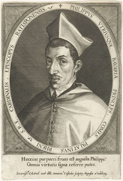 Editor: So, here we have Cornelis Galle I’s engraving, "Portrait of the Augustinian Cardinal Bonaventura Bodoaro de Peraga" from 1636, currently held at the Rijksmuseum. It has this austere, almost academic feel to it. What strikes you most about it? Curator: Well, immediately I'm drawn to the labor and materials involved in creating this print. Engraving requires immense skill and time, carving those fine lines into the metal. Consider, too, the paper itself – its source, the process of manufacture. It speaks to a specific kind of production and consumption during the Baroque period. How does this process challenge traditional boundaries between art and craft? Editor: That's interesting. I was so focused on the image itself. How does focusing on the material aspect change how we see the portrait’s purpose? Curator: It reframes the artwork as not just a representation of the Cardinal, but an object of value, a commodity reflecting social and economic structures. Notice how the frame is so ornate and almost decadent. Consider how this reflects both the Cardinal's power and the engraver’s need to cater to the tastes of a wealthy patronage network. This portrait becomes about power and production rather than just representation. What do you make of the textual inscription at the bottom? Editor: I suppose it reiterates that purpose…it reinforces the Cardinal's accomplishments, turning the print into something like a promotional piece? Curator: Precisely. It transforms the entire print into a form of social and material currency that serves both the subject and the artist. Editor: I hadn’t considered it in those terms before, seeing the engraving almost as a form of early advertising, its production tied to these social functions. Thank you for showing me this material lens, and for a wider, materialist reading of this engraving! Curator: Absolutely. Thinking about art this way opens up interesting perspectives beyond just aesthetic appreciation.