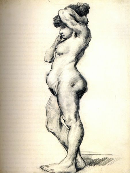 Pierre-Paul Prud'hon made this nude drawing with charcoal and chalk in France, sometime around the late 18th or early 19th century. It's a preparatory sketch, likely for a larger history painting. As an image of the female nude, it participates in a long artistic tradition with complex social dimensions. Historically, the nude was a genre largely controlled by male artists and patrons, and the art academy played a central role in normalizing that power dynamic. Artists like Prud'hon would have studied the nude extensively as part of their training. This drawing is a fascinating example of the artist exploring the aesthetic conventions of his time. To fully understand an image like this, we can consult sources like the artist's letters and the records of the French Royal Academy, piecing together the social conditions and institutional structures that shaped its creation. In doing so, we learn about the ever-changing social life of art.