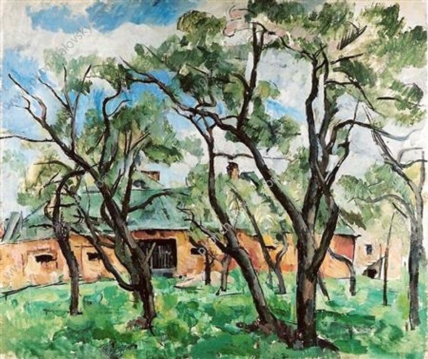 Pyotr Konchalovsky painted this piece, Orchard, with oil on canvas, and it's a delicious example of letting the process lead. The color is laid down in these visible strokes, and you can really see the hand of the artist in it. Up close, you can see how Konchalovsky used a loaded brush to dab at the canvas. It's like he's building up the orchard, one daub at a time. Look at how he renders the light filtering through the leaves – short, choppy strokes of green and blue, capturing the dappled effect. It's so physical, you can almost feel the warmth of the sun on your skin. And notice those dark outlines around the tree trunks – they really make the trees pop, don't they? Konchalovsky clearly had an appreciation for the work of Cezanne, and you see this influence at play here in the use of colour planes to create depth. But really, this painting speaks to how artists build on each other, an ongoing conversation through the ages. It leaves you wondering, what's next?