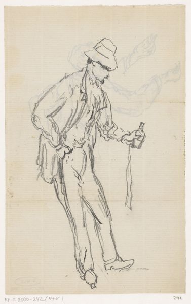 Johannes Tavenraat sketched this man with pen in brown ink at an unknown date, and it can be seen today at the Rijksmuseum. In this image, the sitter's hat is a powerful symbol of authority. Across eras and cultures, headwear has always signified status. Think of the elaborate headdresses of ancient Egyptian pharaohs or the laurel wreaths of Roman emperors. Here, Tavenraat’s figure is more informal, yet the hat evokes a sense of his place in society, a marker of identity. Consider how this contrasts with the image of a veiled woman depicted on the upper left corner, suggesting a position of social modesty or reverence. We see echoes of the veiled figure in countless artworks through time, from religious icons to classical depictions of grief and mourning. These symbols are not static; their meanings twist and evolve with each era. Tavenraat’s work is a conversation across time, engaging with the past while shaping our present understanding.