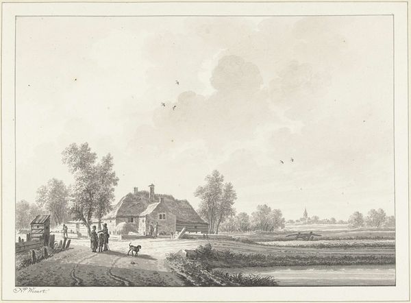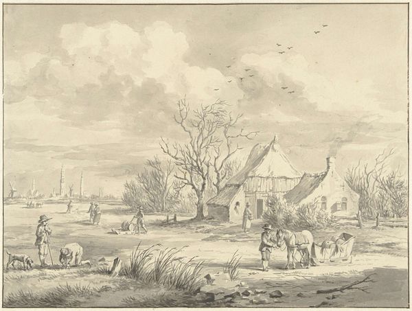 Hendrik Gerbrand Schutter made this drawing of two farmhouses on the Kromme Rijn near Utrecht, using a light wash and delicate pen lines. The drawing’s monochrome palette results from the use of iron gall ink. This was a widely available writing and drawing material. It was made from tannins extracted from oak apples or galls, mixed with iron sulphate and gum arabic as a binder. The resulting fluid was easy to use and relatively permanent, making it ideal for both artistic and administrative purposes. However, iron gall ink is also corrosive, and over time, it can eat away at the paper. The fact that this image is still here is testament to the quality of the paper, and the careful hand of the artist. It's a beautiful example of how even the most mundane materials, expertly used, can result in a delicate work of art.