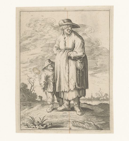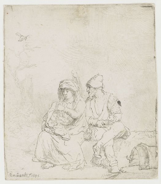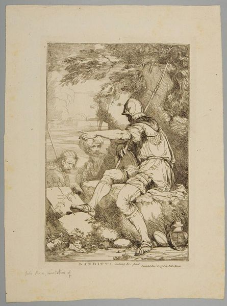 Salvator Rosa created this etching, "Seated Peasant with Two Other Men," using a metal plate, likely copper, and acid. The controlled corrosion of the metal surface allowed him to create the fine lines we see in the print. Consider the material reality of this work. It's a print, meaning it's inherently reproducible, which democratizes its availability. But look closer at the figures depicted. They're peasants, members of the working class, their clothing simple and worn. The etching technique itself, while requiring skill, is a means of mass production, echoing the economic realities of the time. Rosa's choice of subject matter is crucial. He's not depicting noble figures or grand historical events, but ordinary people, imbuing their lives with a sense of dignity. The lines etched into the metal capture the textures of their clothes, the weariness in their faces, and the weight of their labor. By focusing on these everyday figures and using a reproducible medium, Rosa blurs the lines between high art and the lives of ordinary people. He invites us to consider the social context of art and the stories that materials and processes can tell.