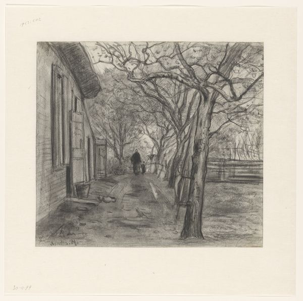 Philip Zilcken etched this view of a house from the backyard in the late 19th or early 20th century. Dominating the scene is the stark, bare tree in the foreground, its branches like reaching fingers against the solid geometry of the house. This motif of a tree, especially when barren, carries a potent symbolism through time. Think of the Tree of Knowledge in Genesis, laden with fateful choices, or the desolate trees in Romantic landscapes, mirroring the soul's turmoil. The barren tree reappears frequently, symbolizing loss, the passage of time, or a period of dormancy. Even in the modern era, we see echoes of it in surrealist art, where a lone tree can represent existential isolation. The house itself is a powerful symbol of shelter and the subconscious. Both the tree and house combined evoke a sense of stark vulnerability, as if the bare soul is laid open to the elements. This primal connection engages viewers on a deep, subconscious level, evoking feelings of melancholic introspection. It's a dance of symbols that will continue to resurface and evolve.