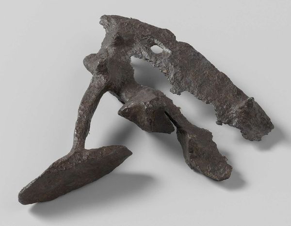 This hinge, an anonymous creation now held in the Rijksmuseum, embodies the meeting of raw material and human effort. Forged from iron, it likely dates to a time when metalwork was a vital craft, essential for everything from building construction to furniture making. The hinge's rough texture speaks volumes about its making. The dark, uneven surface betrays the heat and hammering required to shape the unyielding iron. Looking closely, one can almost see the blacksmith at work, coaxing the metal into form with fire and muscle. The hinge's design, though simple, reflects a deep understanding of functionality and durability. While we may not know the identity of the maker, we can appreciate their skill and the physical labor embedded in this object. The hinge stands as a testament to the value of craft and the often-overlooked beauty found in the everyday. It reminds us that even the most humble objects can carry profound cultural and historical significance.