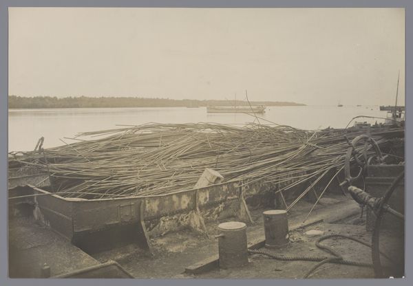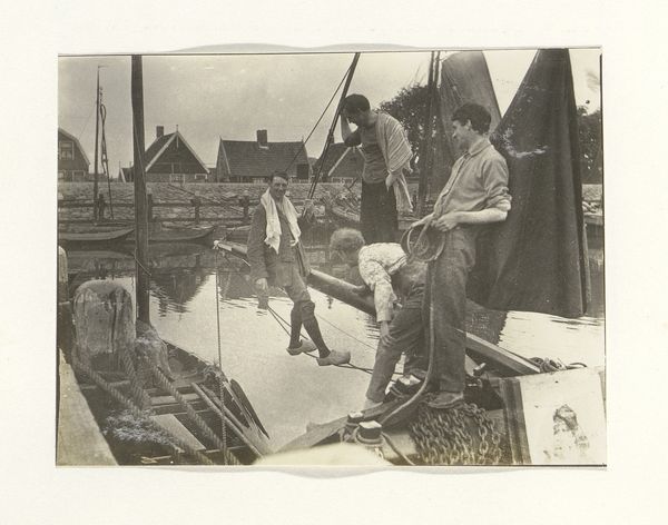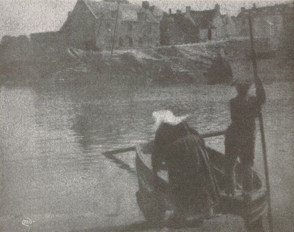 This photogravure, "Breydon Smelters," was created by Peter Henry Emerson. It presents us with a scene of labor and life along the Breydon Water. Emerson's composition is striking. He employs a shallow depth of field to draw our eyes to the central figure of a man focused on his work, while the background elements - the boats, sheds, and water - fade gently into a soft blur. Note how Emerson manipulates the tonal range; the subtle gradations from light to dark create a sense of atmosphere, evoking a melancholic mood. Emerson advocated for photography as a fine art, emphasizing naturalistic depictions of rural life. His approach aligns with the Pictorialist movement, which sought to elevate photography by using soft focus and hand-manipulated printing techniques, like photogravure, to mimic the aesthetic qualities of painting and etching. This image functions not just as a record but as an artistic interpretation. It uses formal elements to explore themes of labor, nature, and the human condition, inviting ongoing reflection.