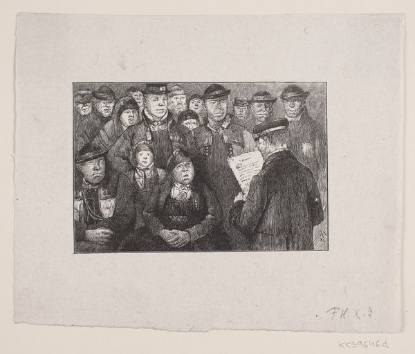 Théophile Alexandre Steinlen made this lithograph, Classe 17, sometime around the turn of the century. Look at how he creates a feeling of movement with these hatching lines all leaning in the same direction. It's like seeing how a drawing emerges, how an image coalesces through the process of its making. It’s interesting how the blue ink almost feels like an architectural blueprint. You can sense how the image was built up through layers of short, sharp strokes. Notice how Steinlen uses dense clusters of lines to create shadows and volume on the figures. Then, how he leaves areas of white paper peeking through to give the impression of light and air. The overall feeling is one of urgency and restlessness, as if the figures are caught in a fleeting moment, marching towards an uncertain future. Steinlen reminds me of Käthe Kollwitz, who also used printmaking to document the lives of working-class people with empathy and insight. Ultimately, art can embrace ambiguity and invite multiple perspectives, rather than offering fixed or definitive answers.