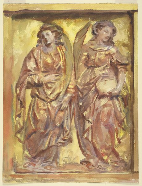 John Singer Sargent painted "Study of Two Bedouins" with oil on canvas, and it feels like a moment captured, a fleeting impression. The brushstrokes are so visible, like he’s wrestling with the paint, trying to pin down these figures before they vanish. Look at how the light catches the white robe of the figure on the left. Each stroke is like a little facet, building up the form. It's thick, but not in a gloppy way. Sargent is so in control of his medium, and the colours are muted, almost sandy, echoing the desert landscape. Then notice the shadow cast by the figure on the right, see how he has used a touch of reddish brown. It’s all about the relationship of colour and light, capturing the feel of being there. This feels very connected to the work of Manet who was also interested in modern life. With both painters, it's like they are saying, "This is how I saw it; make of it what you will."