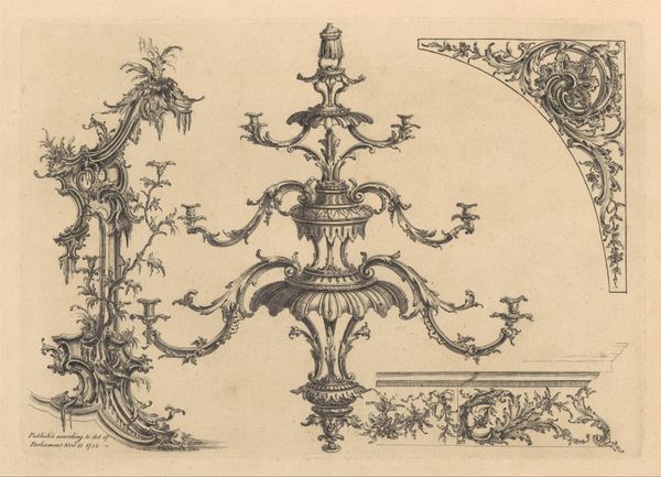 This ornamental design, "Fries met pijlenkoker," was created by Sébastien Leclerc I using etching techniques. The print reveals the artist's skillful manipulation of the etching process, where lines are incised into a metal plate and then printed. The varying line weights and densities create depth and texture, characteristic of this medium. This was an intaglio process that was used commercially for reproducing imagery and ornament. Leclerc and others provided designs that were used for the decoration of architecture and furniture, enabling a wider distribution of decorative styles. In essence, Leclerc's print exemplifies the intersection of artistic skill, technical process, and commercial production. The print’s ornamental design reflects a culture of mass production, where aesthetics were disseminated widely. The work invites us to consider how techniques like etching democratized design, making it accessible beyond elite circles, and blurring the boundaries between art and craft.