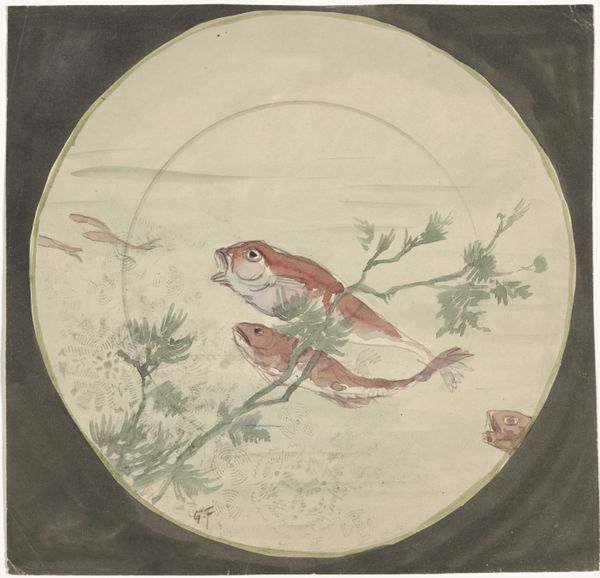 Gustave Fraipont created this design for a plate using watercolor and pencil. Here, we see two blue and yellow fish swimming amongst water lilies. The watery medium lends itself naturally to the subject matter, doesn’t it? The design is not a study for fine art, but rather for mass-produced tableware. This tells us a great deal about Fraipont’s practice, reflecting the shift in the 19th century towards industrialization and the commodification of art. The design would have been transferred to a ceramic surface, where artisans would then apply the colors through a mechanical process. Think about the number of plates that might then be produced, each bearing Fraipont’s design. While it's easy to see the hand of the artist in this original drawing, it's also important to recognize the many hands involved in its eventual distribution. This highlights how the value of art can shift depending on the context of its production and consumption. It asks us to reconsider the role of the artist in a world increasingly shaped by industry.