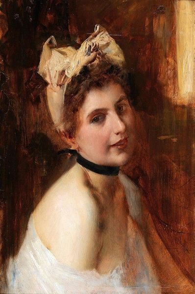 Curator: First blush, I’d say that this artwork makes me think of a dream – soft, hazy, and hinting at something lovely. Editor: And just what dreamlike vision is catching your eye? What you're reacting to is James Jebusa Shannon's “Florence Shannon,” dating back to around 1905. Curator: Shannon, you say? It does carry a whisper of turn-of-the-century romance, doesn't it? What's she made of, this ethereal Florence? Editor: Technically speaking, likely oil on canvas. More conceptually, it's a study in contrasts. Notice how Shannon uses delicate brushstrokes to capture the light on Florence's face, but then juxtaposes that with looser, more gestural strokes in the surrounding flora. It’s as though the figure emerges from a swirl of color and form. Curator: Exactly! It's as if Florence herself is blooming, or maybe even being swallowed, by those luscious lilacs! There’s something a bit melancholy there, too. Is it the way she's turned away, lost in thought, almost fading? The composition almost hints at the fleeting nature of beauty, youth, perhaps life itself. Editor: A convincing argument for fleetingness. Shannon was clearly influenced by the Impressionists – capturing a moment in time with its subtle variations in light and atmosphere. We see that in the way the lilacs almost dissolve into the background. Yet there's also a formality to the portrait, a sense of timelessness evoked by her classic profile. It's this balance, this interplay between the ephemeral and the enduring, that I find particularly compelling. Curator: Compelling and almost bittersweet. Florence’s beauty and the transient lilacs together tell the story of time itself and of remembrance. It is about longing for a fleeting moment. Editor: Indeed, a testament to how visual language of portraiture preserves the past through fleeting images.