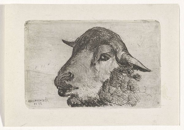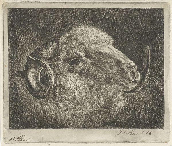 Jacoba de Graaff created this etching of a sheep, sometime in the late 19th or early 20th century. De Graff was part of a wave of women artists who, despite societal constraints, pursued their creative passions. During this era, women's access to formal art education was limited, and their work was often relegated to the domestic sphere. Against this backdrop, de Graaff emerged, focusing on subjects like landscapes and animals, challenging expectations and asserting her presence in the art world. The lone sheep, rendered with such care and detail, could be seen as a symbol of the individual, navigating a complex social landscape. The texture of the sheep’s wool, the gentle curve of its neck, and the way it holds itself, invites a kind of empathetic reading, reflecting the nuanced experiences and perspectives of women during the time. In its quiet way, this etching speaks volumes about identity, resilience, and the power of art to transcend social barriers.