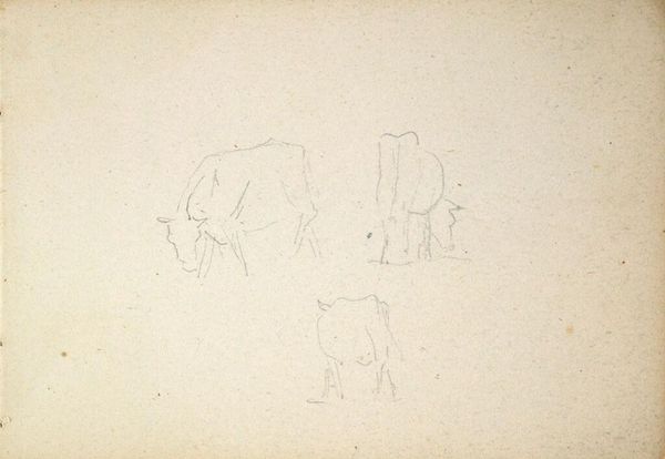 Anton Mauve made this drawing, "Voor een kar gespannen paard," using graphite on paper. This isn't a finished picture, but a sketch – a quick study done to understand the subject. Mauve's choice of graphite is crucial. It allowed him to rapidly capture the scene with a range of tonal values, from the faintest suggestion of the horse's form to the darker, more defined lines indicating its harness and musculature. The very act of sketching implies a direct engagement with the subject, an attempt to grasp the essence of the animal's form and its relationship to labor. The sketch also speaks to the social context of the time. Horses were essential for transportation and agriculture, their labor forming the backbone of the economy. Mauve's sketch acknowledges this reality, depicting the animal not as a majestic creature but as a worker, bound to a cart. By focusing on the materiality and the process behind this sketch, we can better understand the artist's intention and its connection to the broader social landscape of the time. It challenges the traditional view of fine art as purely aesthetic, revealing its potential to reflect the realities of labor and everyday life.