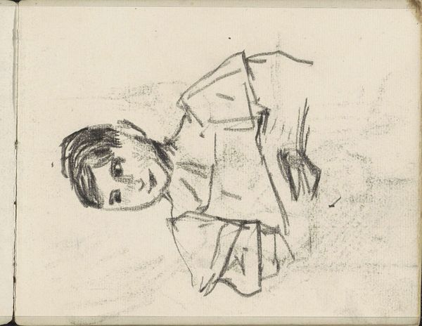 Curator: Here we have Carel Adolph Lion Cachet's "Vrouw met haar hand op een opengeslagen boek," or "Woman with her hand on an open book," a pencil drawing dating from around 1895 to 1900. It's currently held here at the Rijksmuseum. Editor: Well, my first thought is...peaceful. It’s like a fleeting glimpse of a private moment. I mean, look at that light pencil work—almost ethereal, like a memory fading at the edges. Curator: It's interesting you say that. Cachet’s early work often reflects the introspective mood of the fin de siècle, a period marked by significant shifts in European thought and societal structures. The intimacy you perceive likely stems from the increasing emphasis on individual experience that characterized the era. Editor: True, but doesn’t it also strike you as strangely… voyeuristic? It's a private moment, yes, but we're looking down at her. She's not posing; she’s caught in a pensive act of reading or reflection. The impressionist technique makes it even more... raw. Curator: The bird's-eye perspective certainly disrupts the traditional power dynamic of portraiture, especially during this period. Think about the formal portraits that dominated artistic discourse then, intended to convey status and authority. Cachet subverts that. He’s not interested in idealization; he seems more concerned with capturing the transient moment of thought. This resonates with larger cultural shifts regarding representation and the portrayal of women in art. Editor: Representation indeed! But you know, it makes me think of my grandmother, lost in her books. Did she exist for my benefit at those moments, or was she inhabiting some inner cosmos that I could never touch? This piece is doing all that and more in these minimal lines, questioning not just "who," but also "why are we allowed to see this?" Curator: It's a compelling interpretation! What seems at first like a straightforward portrait is layered with societal considerations about how the act of viewing shapes, or even disrupts, personal narratives. Editor: Yeah, that and the fact that someone immortalized my imaginary grandma! I see a deep thoughtfulness—both in the artist and subject. I like that… Curator: An exercise in intimacy—a subtle yet powerful commentary on the period's changing attitudes toward women, reading, and inner lives—all through the humble medium of pencil on paper.