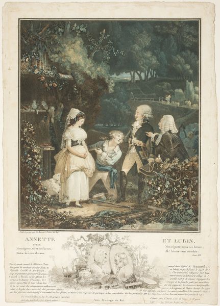 George Morland produced this aquatint titled 'Children Fishing'. Made in England, the image presents a scene of leisure that speaks to the changing social structures of the late 18th century. Notice how the children are dressed. Their clothes mimic adult styles, suggesting a self-conscious performance of social roles, rather than an innocent engagement with nature. The picturesque landscape acts as a stage for this display, reflecting the growing importance of leisure and consumption in British society. Morland himself moved between rural and urban environments and engaged with a variety of social classes. His institutional background is difficult to pin down. To understand this image better, we might explore period literature, fashion plates, and social histories. We can explore this image as a window into a world where childhood innocence and the social performance of adulthood were intertwined.