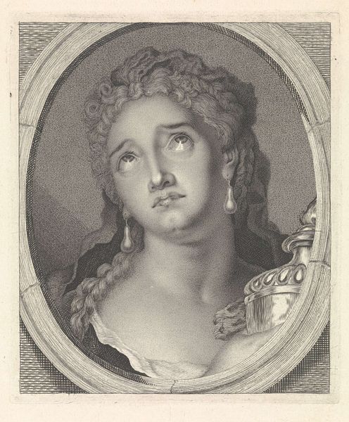 Editor: So, this is "Adrienne Lecouvret in de rol van Cornelia met een urn met de as van haar man Pompeus," by Pieter Lyonet, made sometime between 1716 and 1789. It's a drawing or engraving on paper. It strikes me as incredibly melancholic – what do you see in this piece? Curator: I see a powerful intersection of performance, gender, and historical narrative. Lyonet captures not just a portrait, but a staged moment. Adrienne Lecouvret, a celebrated actress, embodies Cornelia, a Roman figure synonymous with virtue and grief. But who gets to perform grief, and for whose gaze? Think about the theatricality inherent in neoclassicism; it’s not just about form, it’s about constructing morality. Editor: So it’s not just about displaying sadness? Curator: Precisely. It is a very active depiction. Consider, the late 18th century saw significant social upheaval. Performances like this reinforced certain ideals about womanhood, loss, and civic duty. Was this performance of grief empowering or restrictive for women? Who did the story of Cornelia serve? Editor: I guess it's more complex than it appears at first glance. It is more than sadness. Curator: Exactly. The piece encourages us to question the narratives we inherit and the roles assigned to us, even within artistic representation. Editor: I never would have considered how performative grief can be, but that's fascinating. Curator: Seeing art through this lens offers such richer interpretations!