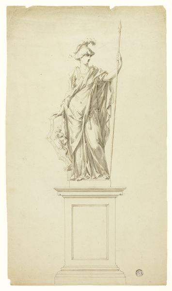 Editor: This is Christian Bernhard Rode’s “Allegorie van de Natuur,” created in 1788. It's an engraving, and it gives me a sense of classical sculpture but rendered with very delicate lines. What jumps out at you when you look at it? Curator: The figure's poised confidence, holding cornucopias overflowing with nature's bounty, speaks to the era's fascination with allegories. But consider this in its historical context: the late 18th century, just before the French Revolution. What narratives were being reinforced, and whose voices were excluded? Does this 'Allegory of Nature' serve to mask societal imbalances by presenting an idealized vision? Editor: So, it's not just about beauty and abundance but about power dynamics? Curator: Precisely. Think about who gets to define 'nature' and its 'allegory'. This woman, surrounded by symbols of dominance – a lion, a dolphin, elements controlled and categorized – embodies a very specific kind of power. What does it mean for nature to be presented as something to be possessed or controlled, especially considering the burgeoning colonial project of the time? Editor: That flips my initial interpretation entirely. I saw a celebration, but now I see a statement about control. Curator: The visual language of Neoclassicism often evokes ideas of order and reason. Rode is certainly participating in that aesthetic, but what if we questioned its supposed neutrality? How does gender intersect with this representation of power and the natural world? Who is this woman meant to represent, and what ideologies is she upholding? Editor: It's a lot to consider. I guess I was just taking the image at face value. Curator: Art always operates within a context. Examining those contexts reveals whose stories get told and whose are erased, or perhaps subtly, undermined. Editor: I’ll definitely look at art with a more critical eye now, thinking about those power dynamics and hidden stories. Curator: Excellent. Art has the power to inspire change, but it also requires us to be vigilant and critically engaged with its messages.
