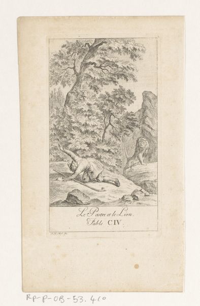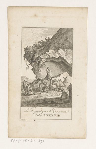 This print, depicting a sick lion and a fox, was made by Pierre Savart in the 1700s. It’s an etching, meaning that Savart would have used a sharp needle to draw through a waxy ground on a copper plate. The plate was then submerged in acid, which bit into the exposed lines. After removing the ground, the plate could be inked and printed. The resulting image has a distinctive graphic quality. You can see how the density of lines creates shading and texture, defining the rocky landscape and the animals within it. Notice the contrast between the solid, looming rocks and the delicate foliage. Etching was a popular medium at the time, prized for its ability to capture fine detail and tonal variation. It was a relatively quick and efficient way to produce multiple images, which could then be disseminated widely. The print medium, therefore, perfectly suited the fable, allowing its moral lesson to reach a broad audience, far beyond those who could afford original paintings or sculptures. The print becomes a commodity, traded and consumed as readily as the story it tells.