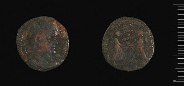 Editor: Here we have a Half Follis of Herakleios, minted in Carthage by Abd-al-Malik of the Umayyad Caliphate. It’s amazing to think of the lives this coin has touched. What can you tell me about the historical context? Curator: This coin speaks volumes about shifting power dynamics. Abd-al-Malik's adaptation of Byzantine coinage served as a visual declaration of Umayyad authority and a direct challenge to Byzantine dominance. Consider the ways in which cultural symbols are deployed in these assertions of political legitimacy. What do you make of it? Editor: It’s like he’s saying, "We’re here now." Curator: Exactly! And through this artifact, we can explore the complex interplay between economic, political, and religious ideologies in the early Islamic world. It allows us to reflect on the lasting impacts of colonialism and the ways identity is negotiated through material culture. Editor: That gives me a lot to think about. Curator: Indeed. This coin invites us to delve deeper into the nuanced narratives of power and cultural exchange.