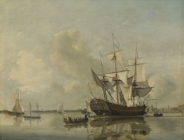 Johan Barthold Jongkind created 'A View of the Harbour, Rotterdam' with oil on canvas, capturing a bustling port scene. Jongkind, a 19th-century Dutch painter, lived through a time of great social and economic change, as industrialization transformed Europe. In this painting, we see ships of various sizes, with sailors and workers going about their tasks. The figures are rendered with quick brushstrokes, suggesting a sense of movement and energy. As the ships come and go, they bring stories of international trade, cultural exchange and perhaps also colonial exploitation. The social classes are represented here too, from the working class figures on the docks to the higher status individuals in the boats. Jongkind's choice of subject matter—the working harbor—reflects a broader artistic interest in capturing everyday life, and it invites us to reflect on the complex interplay of labor, commerce, and human experience.