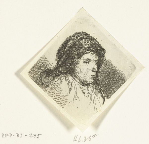 Curator: Look at this tender portrait of a boy by Jacob Taanman, titled "Buste van een jongen met muts." Created sometime between 1846 and 1877, this etching and engraving offers an intimate glimpse into the past, here on display at the Rijksmuseum. Editor: There’s a delicacy to it, isn't there? It's as though Taanman caught the boy in a quiet, contemplative moment. The details are intricate yet the overall mood feels soft, almost melancholic. I wonder what he’s thinking. Curator: That pensive quality may speak to the era’s fascination with realism. Artists like Taanman sought to depict subjects not as idealized figures, but as individuals with their own complexities. Think about the socio-political changes swirling then and how that might foster an appetite for portraits showing unvarnished humanity. Editor: Absolutely. And I find it amazing how the simplicity of the etching conveys so much about the texture of the boy’s clothing and cap. There’s a humbleness, yet a definite sense of the boy's presence, his personhood… it reminds me a little bit of Rembrandt, in its psychological depth but very different visually. Curator: The scale too is significant, lending to this intimacy. It wasn’t meant to impress through grandeur, but through close observation and skillful rendering of emotion. It invites you in. Think of who would have been commissioning art and how this connects to family values in that moment. Editor: It truly does. There's almost a wistful air about the boy. The way the light falls across his face... it sparks so much narrative potential. What was his life like? What dreams did he hold? We will never really know. It is like seeing a ghost, from not so long ago. Curator: These artworks offer a snapshot of history, seen through Taanman’s eyes and the changing times. And now, perhaps through our own. Editor: It makes me want to look more closely at everyone. The world is full of stories, aren't they? Sometimes all it takes is a drawing to unlock them.