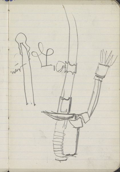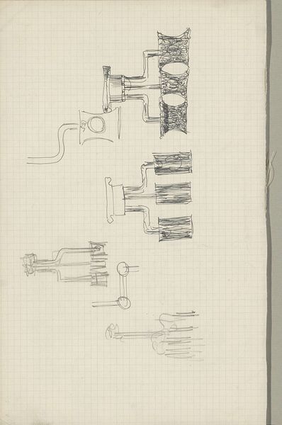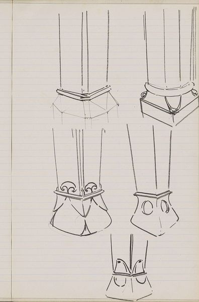 Editor: This is Gerrit Willem Dijsselhof's "Tafelpoten," a pencil drawing on paper from around 1901, currently held in the Rijksmuseum. The sketch-like quality gives it an unfinished, almost dreamlike appearance. What strikes you most about it? Curator: I see more than just a design for table legs. Look at the date – around 1901. Art Nouveau, right? But consider the social context. Furniture wasn’t just furniture. It spoke to class, to aspiration. Who got to have artful furniture like this, and who was making it? The labor involved, often unseen, underpinned these ‘artistic’ flourishes. Do you think Dijsselhof was engaging with those power dynamics? Editor: That's a great point! I was so focused on the aesthetic, I didn't really think about the social implications. The lines, while elegant, also feel quite rigid in places, a tension maybe reflecting that very unease. Curator: Precisely! And consider the geometric forms juxtaposed with the organic curves. This blend challenges traditional hierarchies in design, pointing towards a potential desire to democratize aesthetics. To question the established norms. Could it be that the intended functionality of a table becomes a site of silent protest? Editor: A silent protest through furniture design! I never would have considered that. It’s fascinating how something so seemingly simple can reveal so much about the time it was created. Curator: It’s about asking whose stories are embedded in these objects. The beauty isn’t just in the lines, but in the questions they raise about power and access. Editor: Thanks, that gives me a completely new way to look at design! It's like unlocking a secret language.