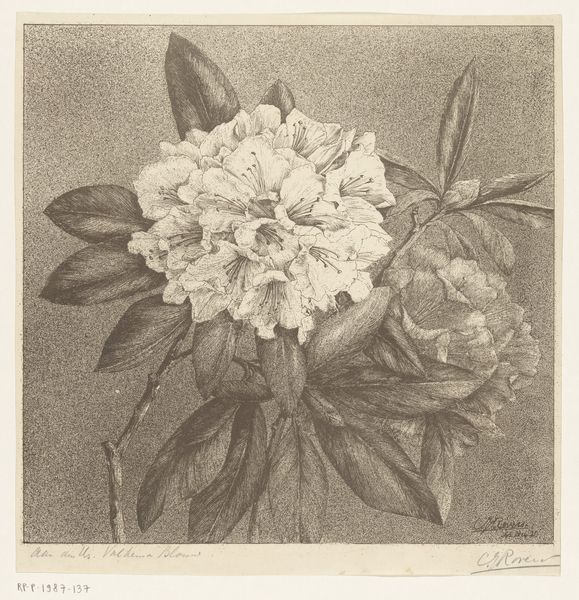 Curator: Immediately, the scale strikes me. This isolated blossom, starkly lit, fills the frame, almost confronting the viewer. There's something unsettling yet powerful in its magnified presence. Editor: It’s fascinating, isn't it? What we are looking at here is Karl Blossfeldt’s “Plant Studies”, also known as "Urformen der Kunst: photographische Pflanzenbilder”, from 1928, currently held at the Rijksmuseum. Blossfeldt dedicated his career to capturing botanical forms, which really places these studies at an intersection of art nouveau and realism. Curator: Realism filtered through an almost surreal lens. The photographic detail is astonishing. You can trace every vein in the petals, and it's nearly clinical in its exactitude, devoid of context beyond the plant itself. What I am really drawn to are the shapes: nature itself as architect. Editor: Precisely. Consider this in relation to the New Objectivity movement burgeoning at the time, and its rejection of sentimentalism. Blossfeldt presents nature as pure form, mirroring the functionalist ideals in architecture and design, reducing the social life of botany into mere shape. I also see this as speaking to ideas within critical race studies about extracting bodies from their culture. Here we see an individualistic gaze. Curator: It almost feels like a taxonomy presented without empathy. However, even with the artist’s scientific intentions, I read tension between objectivity and artistic expression. The very act of selecting and composing, in a way transforms these plant parts into a kind of visual rhetoric, maybe an anti-colonial perspective regarding Europe's grasp for plants as trophies from foreign lands. Editor: I can certainly see those elements playing out within it, yes. The image has prompted me to reflect upon how artists use realism and how its many artistic movements interact in the expression of visual intent, to give visibility to forms which is in a way empowering those excluded from the power structure of representation. Curator: And for me, this examination reveals both the beauty and the potential for unsettling scrutiny that's present when viewing an ordinary form through photography.