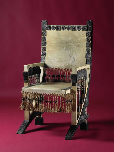 This armchair was crafted by Thomas Affleck, a prominent Philadelphia cabinetmaker in the late 18th century. Notice the combination of carved mahogany and opulent textile, both defining elements of its construction. The wood was likely imported from the West Indies, testament to the transatlantic trade networks of the time. The carving would have been a labor-intensive process, requiring highly skilled artisans. The elaborate upholstery speaks to the wealth of the chair's original owner. But this wasn't just about comfort, it was about display. The patterned fabric, probably imported from Europe, would have been stretched and secured with meticulous care, highlighting its value. This chair wasn't just a place to sit, it was a statement of social status. The design reflects the integration of fine craftsmanship with global commerce, demonstrating how objects carry cultural meaning far beyond their immediate function.