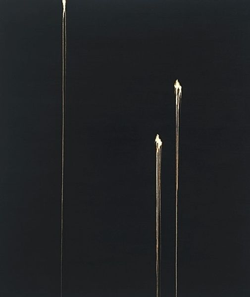 Ed Ruscha made this piece, "Hi, Honey", with a seemingly simple setup. A carrot dangles from a fishing rod against a dark, almost infinite background. I love how the ordinary is elevated. There’s something so deadpan about the presentation. The carrot is painted with such clean lines, such precision, it almost feels like a Pop Art object, like Warhol’s soup cans, but weirder, more surreal. The fishing rod is equally considered. Look at the way it bends, a subtle curve suggesting weight and tension. It’s not just a line; it’s a carefully observed form. The contrast between the carrot’s bright orange and the inky blackness of the background makes it pop, it also creates a sense of isolation. It is as if the carrot is suspended in a void, a metaphor for the human condition maybe? "Hi, Honey" reminds me of Magritte, that same sense of playful absurdity, a challenge to our perceptions. Ruscha's work invites us to find meaning in the mundane, to see the world with fresh eyes. It's a prompt to think about art as a process of making meaning, rather than finding it.