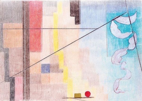 Suzanne Duchamp's "Scottish Espagnole" is like a quirky visual puzzle rendered with paint, ink, and collage. Her approach feels like a playful experiment, assembling geometric shapes and lines in a way that's both precise and a little bit off-kilter. The surface has this smooth, almost ethereal quality, thanks to the subtle gradations of color. I love how Duchamp uses thin washes of paint, allowing the under layers to peek through, creating a sense of depth. There is also this contrast between the soft, rounded forms and the sharp, angular lines. That zig-zag form running across the composition is so striking, it seems to vibrate against the flat ground. It’s like a jolt of energy cutting through the stillness. It reminds me a bit of Picabia's mechanical drawings, but with a softer, more whimsical touch. It’s this ongoing conversation between artists, riffing on ideas, and pushing the boundaries of what art can be. The beauty of art is that it embraces these ambiguities, inviting us to see the world in new and unexpected ways.