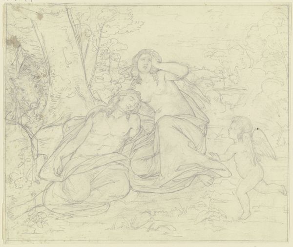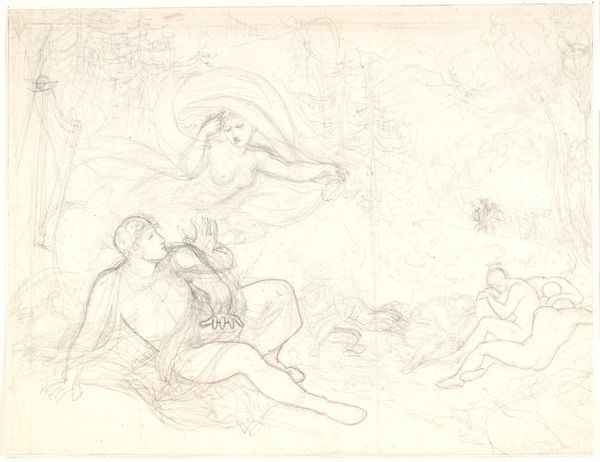 This drawing, "Adoration of the Shepherds", by Victor Müller is presented in delicate pencil strokes. The composition, though unfinished, reveals a structured arrangement of figures clustered around a central scene of maternal care. Müller employs a network of fine lines, creating a sense of depth and movement. The incomplete nature of the drawing invites us to consider the interplay between presence and absence, and the dynamic process through which form emerges. This challenges traditional notions of artistic perfection, suggesting that meaning can be found not only in the completed image but also in the traces of its making. The drawing’s openness becomes a space for contemplation, where the structure of the composition guides our interpretation. The drawing's form destabilizes fixed meanings by embracing the transient nature of the creative process. It underscores the fluidity inherent in artistic representation.