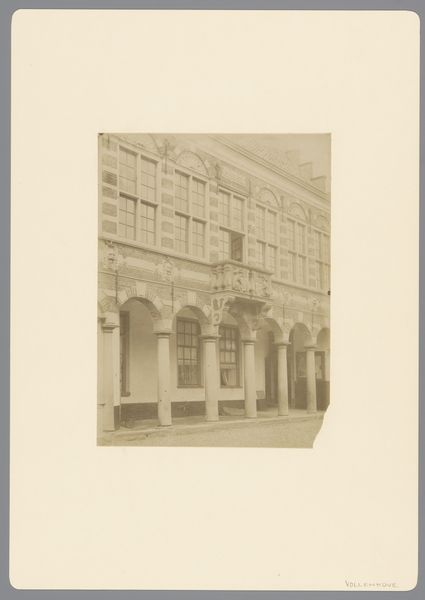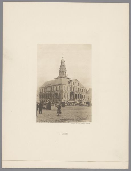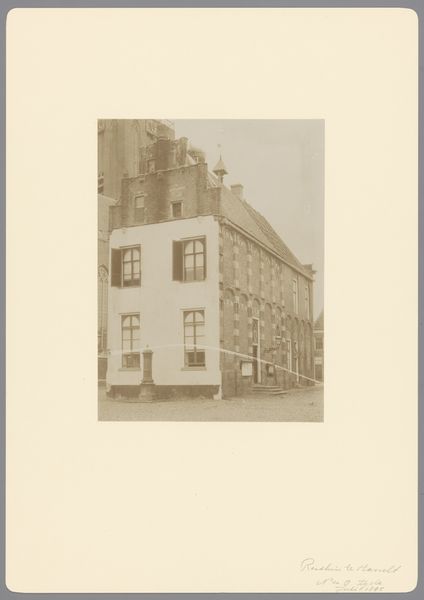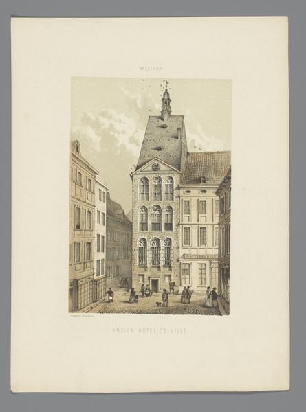 This is an undated photograph, made by an anonymous artist for Monumentenzorg, titled 'Gezicht op het oud-stadhuis te Maastricht'. The photograph centres on the Old Town Hall, using the converging lines of the surrounding buildings to draw the viewer's eye. Note the geometric precision achieved through the architectural forms. The photograph plays with light and shadow to create a sense of depth, which adds an emotional resonance to what could otherwise be a straightforward depiction. The composition is structured to emphasize the relationship between the Town Hall and the space around it. The buildings on either side don't just frame the central structure, but also engage in a visual dialogue. This photograph presents a discourse on space and perspective, where the town hall isn't just a building, but a focal point defined by its spatial context. This visual framework enables a semiotic reading of the Town Hall as a signifier of civic order, framed and thus defined by the everyday structures surrounding it.