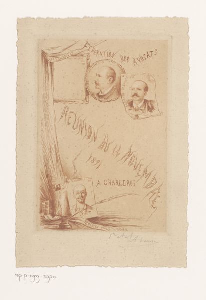 Editor: So, this is Adolphe Léon Willette’s "Affiche voor Pauvre Pierrot", a poster from 1887. It's a lithograph. There’s something melancholic about the imagery, the muted palette, and the subject itself. What's your take on it? Curator: From a materialist perspective, I’m struck by the means of production here. This isn't just about aesthetic Symbolism or landscape. It’s a lithograph, mass-produced. Consider the economic context: posters were crucial for advertising and disseminating culture. The rise of lithography allowed for the wide circulation of images like this. Notice the integration of text and image: what statement does the commercialisation of art say about the status of the artist? Editor: Interesting point. I was focused on the imagery - the sad clown, Pierrot, and the surrounding elements like the moon, the rose and the insect… all seem symbolic of something. Curator: Precisely, but we have to move beyond the simple "what does it mean?" and examine the material conditions that allowed those symbols to be circulated so widely. The choice of lithography allowed Willette's imagery, and therefore the themes it expresses, to reach a much wider audience. How did that shift consumption habits of the middle and lower classes? Was art then merely another form of merchandise? Editor: I never thought about it that way. It shifts the whole idea of art. So it becomes less about the artist's inner world and more about accessibility and marketing through materials and means of mass distribution, thereby challenging traditional boundaries. Curator: Indeed. We often elevate "high art" but here's Willette, using printing techniques usually used for mass market materials to reach a diverse audience. How do we see this in connection with craft or even labor itself? This changes our assessment of the creative act, don’t you agree? Editor: Absolutely! Seeing it as a commentary on art as a commodity is pretty insightful. I will definitely start looking at art through the means and methods of its production. Curator: Examining the context of its production can deepen our experience and help reveal an under layer, especially of this era of social change.