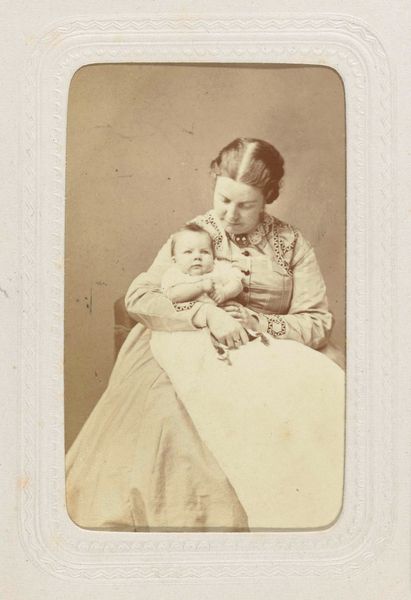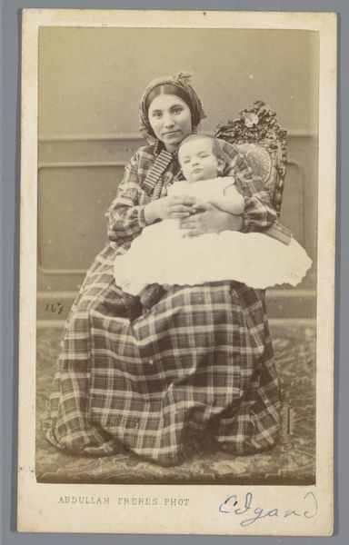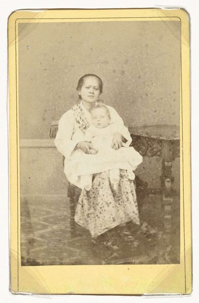 This photograph portrays Tine Kleiterp-Vermeulen holding her son Klaas Kleiterp, captured in Madjene on Celebes by Klaas Kleiterp in the early 20th century. The image offers us a glimpse into the Kleiterp family's life during a time of Dutch colonial presence in the region. In this intimate portrait, we see a mother and child against the backdrop of a simple wooden structure, surrounded by foliage. Tine's gaze is direct, and her posture is natural as she holds her son. The way the light falls softly on their faces evokes a sense of tenderness and connection. The photograph seems to hint at the complex intersection of personal and colonial narratives, where the intimate moments of family life unfold within a broader historical context. The image quietly speaks to both the universal experience of motherhood and the particular circumstances of living in a colonial territory. It encapsulates themes of identity, belonging, and the negotiation of cultural spaces.