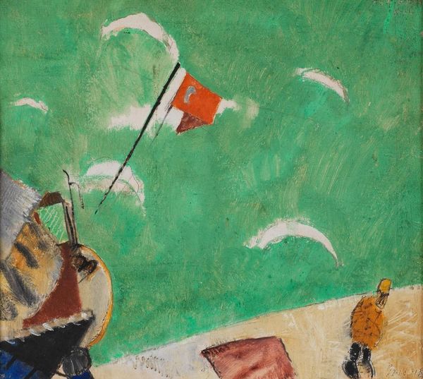 Editor: This is António Carneiro's "Praia da Figueira da Foz," created in 1921, and looks like it might be watercolour or maybe oil pastel. The scene has a lovely, carefree atmosphere – you can almost feel the heat of the sun and hear the sounds of the beach. How would you interpret this scene? Curator: Carneiro’s work offers a glimpse into the changing social landscape of early 20th century leisure. The beach wasn’t just a physical place; it was increasingly a stage for modern life. How do you think paintings like this influenced public perception of these leisure spaces? Editor: I guess, showing a beach filled with people implies that this location and type of activity were available to many, creating the idea that these spaces were becoming democratic… Curator: Precisely! And think about the artist's choices. Why depict this particular beach, this particular moment? Was Carneiro consciously documenting a social shift, or simply capturing the beauty of the scene? And what artistic movements do you see present in this painting? Editor: The brushstrokes seem inspired by impressionism. Was this type of scene meant to further an open-minded attitude to these public places by conveying beauty or new customs? Curator: That's a very astute observation. Carneiro, through his painterly style, elevates the everyday activities of the beach to art, suggesting that modern life itself could be beautiful. This resonates with a larger project, where artists attempted to align art with popular experience. How might this affect what is collected and preserved today? Editor: Wow, that’s insightful. It’s made me realize that there’s a dialogue going on in paintings like these - not just amongst the people on the beach, but between the artist and the audience, about what deserves our attention. Curator: Exactly! Seeing this piece has reminded me how art and recreation continually reflect and influence social behavior and collective memory.
