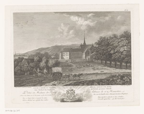 Curator: Let’s turn our attention to “View of an Estate,” attributed to John William Upham. It’s rendered in watercolor and exemplifies landscape art. Editor: Oh, immediately, there's something melancholic about it. All those muted greens and blues, it feels like a sigh held in the countryside air. And that large building – it looms a little, doesn't it? Like a quiet power statement nestled in nature. Curator: That's a keen observation. The positioning of the estate, almost centrally dominating the vista, speaks volumes about land ownership and class structures of the time. Upham's choice of a distant perspective doesn't necessarily romanticize the estate; rather, it might offer a critique of its imposing presence within the natural landscape. How do you read that juxtaposition? Editor: I think you’re right. There’s a definite push-pull dynamic there. It's beautiful, undeniably, the soft colors and rolling hills, but that man-made structure feels... other. A bit like an intruder. I imagine what it would feel like to live in that space - maybe as one of the inhabitants of the buildings or maybe as one of the inhabitants in the land surrounding. Does that river offer a space to escape or freedom, do you think? Curator: That's interesting. It certainly allows for such readings. Water in art often symbolizes movement and change. In this case, though, the river seems almost contained, its path dictated by the estate's grounds. The painting evokes complex questions about the control of resources and the potential limitations imposed on natural elements by human ambition. Editor: Exactly. It's less "nature in harmony" and more "nature managed." I wonder what the lives were like for those living there, in the estate but more importantly in the fields below it. Makes me wonder what their interior life looks like? Curator: The absence of readily identifiable figures could suggest an intentional erasure, prompting us to question whose stories are typically centered in landscape paintings and whose are omitted. Thinking about the legacy of power and representation, I think that this offers an alternative to the grand view tradition within landscape painting. Editor: A muted resistance then? A quiet subversion? Well, I, for one, am absolutely ready to project untold stories onto those vacant fields and waters. Curator: This piece certainly invites us to reconsider our relationship with landscape, reminding us that even the most tranquil scenes are laden with socio-political meaning. Editor: Yes! So much for a simple countryside scene; it’s practically a battleground of history, class, and quiet rebellion.