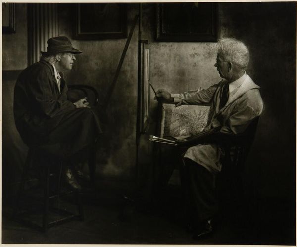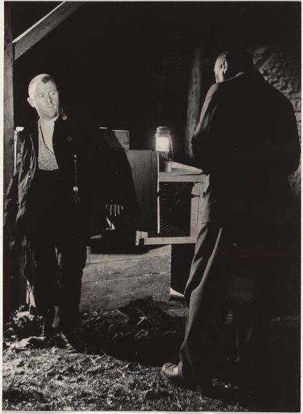 This gelatin silver print by Robert Frank captures actors on the set of the film "Steinbruch." Notice the doorway framing the figures, a motif rich with symbolic resonance. The doorway, an archetypal symbol, represents transition, access, and choice. In ancient Roman art, Janus, the god of doorways, embodied beginnings and endings, his two faces looking simultaneously to the past and future. Here, the actors are caught in a liminal space, poised between the darkness of the interior and the uncertain world outside, reflecting perhaps, the instability of postwar Europe. Like Janus, these figures embody duality, one in shadow, the other in the light. Their expressions evoke a potent mix of weariness and anticipation, a psychological tension that engages us on a visceral level. The doorway becomes a stage for the drama of human existence. The image transcends a mere film still, it's a portal into the collective memory of transition and transformation.