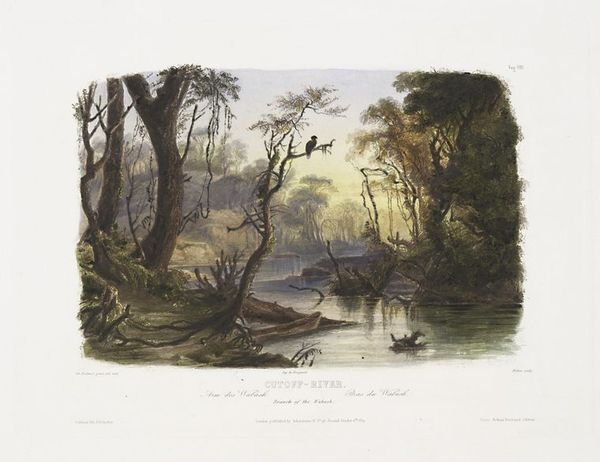 Editor: This watercolor print, titled "Punka Indians Encamped on the Banks of the Missouri," created by Karl Bodmer in 1843, is so fascinating. The level of detail for a scene this expansive is striking, yet there’s also something melancholic about its quiet observation. What catches your eye most about it? Curator: What I find compelling is its historical positioning. Bodmer was a European artist traveling through North America, documenting what he saw. It is important to recognize how such visuals participated in constructing a specific narrative – of both romanticizing and, ultimately, enabling the displacement of Indigenous populations. How do you think images like this shaped the public’s understanding of the American West? Editor: It’s strange, because while seemingly documentary, there’s an undeniably painterly and idealistic quality to the composition and light. The untouched wilderness…It almost obscures the actual experiences and claims of the people who lived there. Curator: Precisely. And consider the role museums played, and still play, in housing and exhibiting these images. It positions these depictions of Indigenous life as something distant, belonging to the past. The art world’s role in this historical narrative is important to analyze. What might the lack of Indigenous voices within museums at that time have contributed to? Editor: It highlights how these landscapes and their inhabitants were being consumed and framed through a very specific, and arguably biased, lens. We lose so much complexity. Curator: Exactly. Reflecting on Bodmer's piece reminds us that artistic representations are rarely neutral. Examining whose story is being told, and how, is vital in understanding history and art. Editor: That’s a powerful reminder about the responsibility that comes with viewing and interpreting art like this. Thank you!