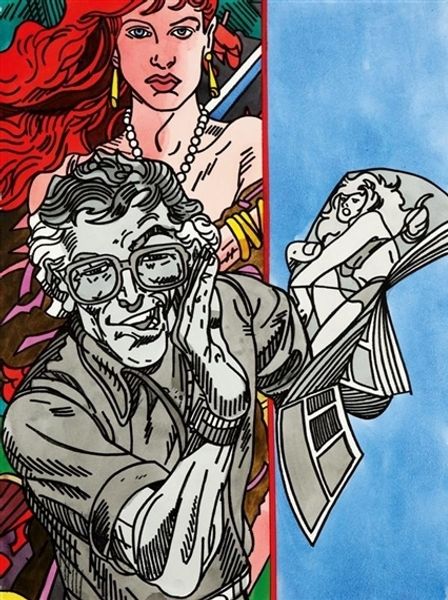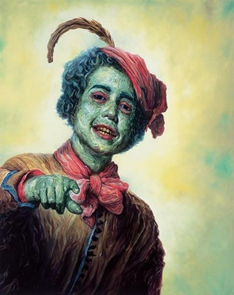Curator: Let's talk about Greg Hildebrandt's "Riddler" from 2008, a captivating portrait rendered in pencil and coloured pencil. Editor: My first thought? Utter delight. The stark contrast of white against the void pulls you right into the Riddler's manic energy. It’s unsettling, but in a deliciously comic-booky way. Curator: Absolutely. What I find compelling is how Hildebrandt navigates the high-art/low-art divide. Comic art often gets sidelined, but the craftsmanship here – the intense detail in the rendering – elevates it. Notice how the figure dominates the dark space: What effect do you think the artist was aiming for? Editor: For me, it screams performance. He’s theatrical, putting on a show. That gleaming question mark on the cane practically dares you to play along. I'm also wondering about the tools Hildebrandt employed: that colored pencil work brings a raw, visceral feel. Almost scratchy... deliberately unnerving, I'd say. Curator: Agreed. The visible texture highlights the labor involved, the artist's hand at work. It’s not slick digital perfection, but something tangibly human, even though he is portraying a villain. There’s also the consumption aspect. Comic characters, like the Riddler, become commodities, subject to ever-shifting interpretations. Hildebrandt adds to that chain. Editor: That’s insightful. It speaks to this continuous re-imagining of these figures that have permeated our cultural lexicon, as if artists everywhere seek to understand their mystery. The shadow play on his face intrigues me – it almost creates another riddle in itself! Curator: Indeed, from a materialist perspective, this drawing embodies a confluence of production, consumption, and artistic intent. What do you take away from it? Editor: "Riddler" has completely flipped my idea about how 'real' something drawn can seem. The work is madcap and beautifully rendered. Curator: Agreed, its strength comes from how the mundane material--paper, pencils-- become more.
