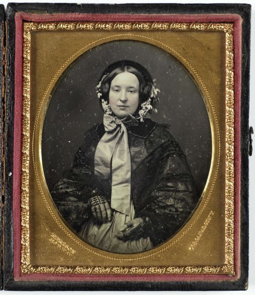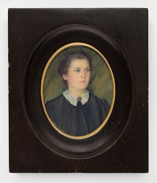 Editor: So, this is Christina Robertson’s "Self-portrait" from 1822. It looks like it’s done with watercolors, and there's something so intimate about it, the way she presents herself both as a lady of society, but also at work. What strikes you most about this piece? Curator: I’m fascinated by how Robertson crafts her identity. The accoutrements of her status are there – the fur-lined coat, the delicate lace – but they frame her active role as an artist. Note how she holds both a book and a pen – emblems of intellectual and creative agency. It subtly elevates the role of women, doesn't it? Editor: Yes, it really does. The tools of her trade are displayed proudly, but what do you make of her direct gaze, and her clothes? Curator: Her gaze is confident but also perhaps a bit reserved, and those high-waisted gowns and bonnets are strongly associated with this time period. These portraits were typically designed to project specific virtues and statuses, shaping societal expectations, so it's no surprise that she paints herself in that image. Editor: That's insightful, I hadn't considered the performative aspect of it. Is she consciously crafting an image? Curator: Undoubtedly! Every element carries cultural weight – the way she is portrayed creates layers of meaning to those familiar with the artistic language of her time. We need to recognize this image through a cultural lens and not just take this picture at face value. Editor: So by placing those artistic cues, the message resonates more widely than a contemporary piece would. Curator: Exactly, it continues a story and reinforces those common themes. That's part of the power of visual symbols – cultural memory. Editor: Wow, it's fascinating to think about how much an image from so long ago still communicates today. Curator: It really makes you appreciate how deeply symbols affect us.