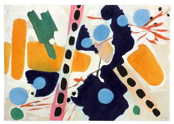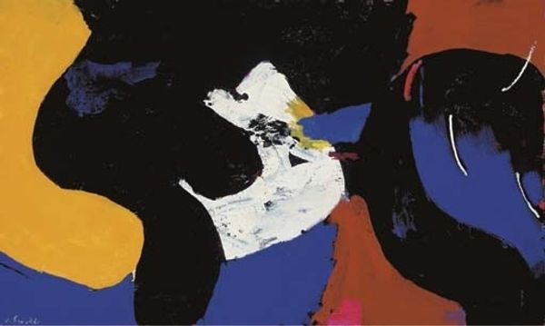 Willi Baumeister made this abstract work, Monturi with Red and Blue, likely using oils to build up layers. There's a real sense of play between the flat planes of color and the delicate lines that seem to float over the surface. You know, it's all about the process of putting paint down and seeing what happens. Looking closer, notice how the big white shape is not just white, but a collection of greys and whites creating depth. Then, there's this red blob hovering above, almost cartoonish in its simplicity, countered by the solid black form that seems to anchor the whole composition. Those little dribbles and scattered dots create movement and rhythm, preventing the painting from becoming static. The way Baumeister balances these elements reminds me a bit of Kandinsky, but with a more grounded, material feel. It's a conversation across time, these artists riffing off each other, exploring the possibilities of abstraction. And what does it all mean? Well, that's for you to decide. Art isn't about answers, it's about questions.