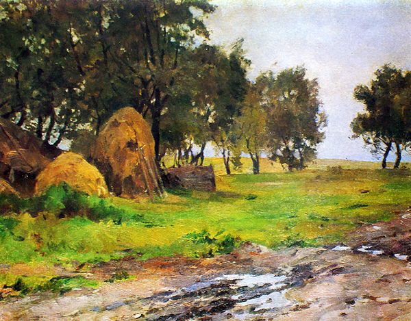 John Constable painted this unnamed oil sketch, now known as 'Traveller,' capturing a moment of rest amidst nature. A lone figure sits by the roadside, beneath the shade of a grand tree, a symbol of life and refuge. The act of pausing, seeking respite under the boughs of a tree, echoes through centuries of art. Consider the pastoral scenes of the Renaissance, where figures find solace in the natural world, a connection to simpler, more idyllic times. The tree, in particular, is not merely botanical; it is an axis mundi, a connection between earthly life and the heavens. Think of the ancient myths where gods and nymphs dwell within forests, their fates intertwined with the health of the woods. This harks back to the collective memory of humanity's deep-rooted relationship with nature. Constable taps into this subconscious understanding, inviting us to contemplate our place within the grand tapestry of life. The traveler is a universal figure, reminding us of our shared journey, our constant movement through time and space, and the occasional need to pause and reflect.