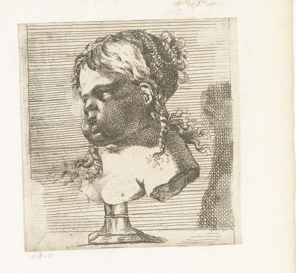 Curator: Here we have Jacobus Ludovicus Cornet’s etching from 1851, “Jongetje met hoed," or "Young Boy with Hat." It's currently part of the Rijksmuseum collection. Editor: My initial feeling? It's quite somber, despite depicting a child. There's a weightiness to the lines and shading, particularly around the face, that lends it a very serious air. Curator: Yes, the gravity is compelling. Children in art were often symbolic, and the hat here isn’t just a hat. Its slouching form could signify burdens of maturity prematurely placed. A falling cap means loss of status. Or perhaps, this piece speaks more to Cornet’s technical skill in capturing folds and textures with such delicate, repetitive mark-making. Editor: That texture fascinates me. Look at the density of the cross-hatching—the sheer labor involved in creating these intricate lines with an etching needle. It transforms what could be a simple portrait into a testament to the engraver's craft and the hours of work in making this particular print. What about access to materials at that time too? I am curious of its edition, the materials that were involved in this print-making technique at that moment... Curator: The print falls squarely within the Realism movement; a rejection of idealized forms in favor of portraying life as it was. Cornet captured the child as they truly were. Editor: The realism is undeniable, yet there's a starkness that elevates it beyond simple observation. What strikes me too is how accessible this would have made the image at the time. Here is something of artistic, realist appeal, readily reproduced and consumed by a wider public. Curator: Exactly, printmaking democratized art, moving it away from solely the realm of the wealthy and toward the growing middle class. Editor: Cornet's labor and this etching speaks volumes not just about one child, but about the conditions of artistic creation, consumption, and accessibility. Curator: Yes, seeing beyond the subject and into the societal mechanics that both produce and receive this art transforms it in a really remarkable way.