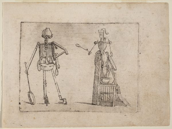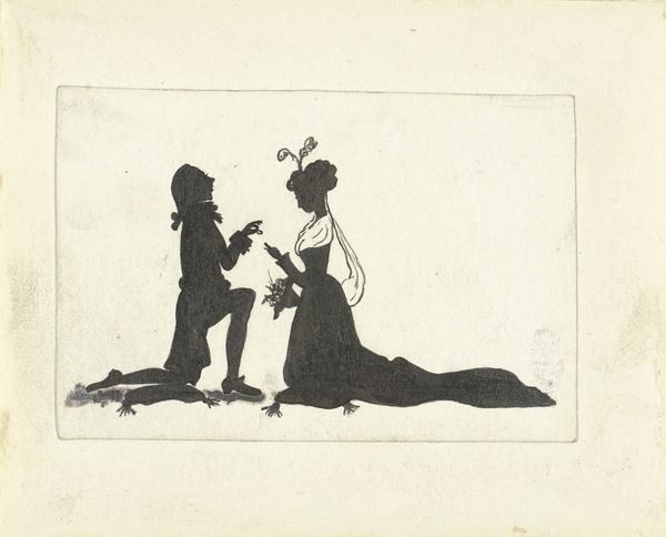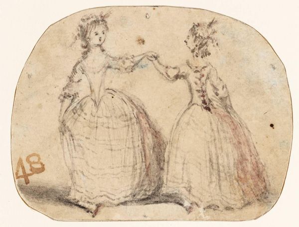 Editor: Here we have Susanna Duncombe's "A Lady and a Gentleman Dancing," held at the Tate. It’s quite small, and the figures are rendered with such quick, expressive lines. What does this image evoke for you? Curator: The sketch, with its seemingly effortless depiction of movement, speaks volumes about the social rituals of the time. How might this image have been perceived within the artistic circles and societal norms of 18th-century England? Editor: So, it's a reflection of societal norms? I hadn't considered that. Curator: Precisely. Dance was a carefully choreographed display of status and courtship, and Duncombe captures that performance. The very act of sketching such a scene—what does that say about her position and perspective? Editor: It makes me think about access and who got to participate in these rituals, both in life and in art. Curator: An excellent point. It is interesting to think about the role of women in the arts and the societal norms that affected their work. Editor: Yes, that changed how I view this piece. Thanks!
