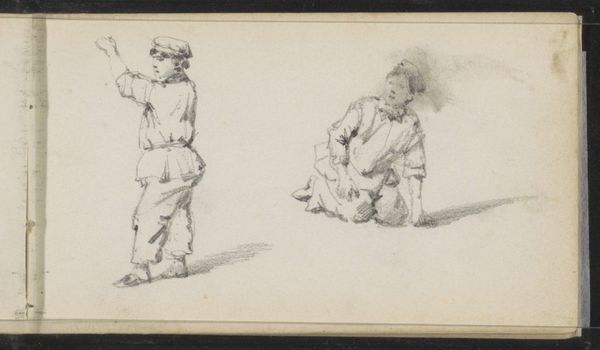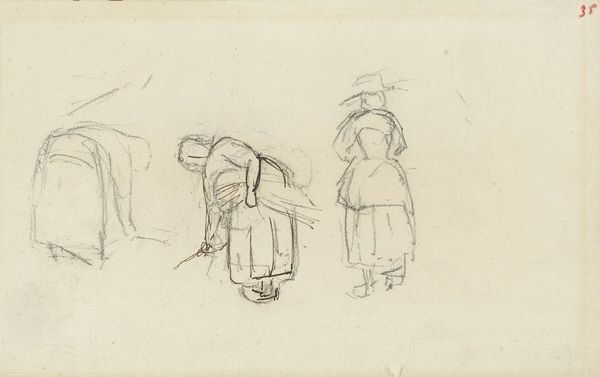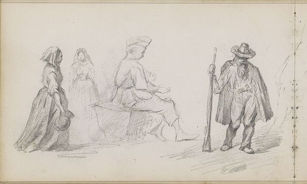 Editor: This graphite sketch is titled "Figure Studies; verso: Figure Studies after Sculpture (?)" by John Singer Sargent. I find the composition quite intriguing with its multiple figures scattered across the page. What do you see in this piece? Curator: I am drawn to the artist's masterful use of line. Observe how the varying weights and densities of the graphite create a sense of depth and volume, despite the absence of color. Note how the artist captures movement, yet retains a sense of balanced form. Editor: I hadn't considered that, but it's true. The contrast almost creates a sense of the figures breathing. Curator: Precisely. The sketches are less about the subjects themselves, and more about the formal elements. The artist's exploration of form and line create the work's core structural interest. Editor: Thanks, I now appreciate the work more as an independent study of forms rather than just preparatory sketches.