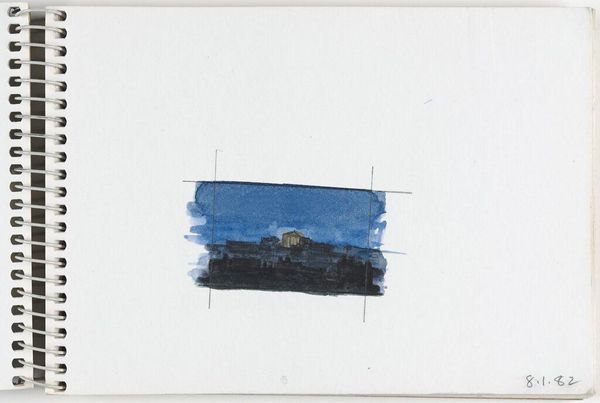 Curator: This is Elena Prentice's small watercolor, simply titled "Landscape," housed here at the Harvard Art Museums. Editor: It's evocative. The washes of grey and blue suggest a hazy atmosphere, but the ruled lines interrupt any romantic reading. Curator: Indeed. Consider the notebook format itself. It demystifies the artistic process. It wasn't meant for grand display, but quiet, personal study. Editor: The transparency of watercolor feels appropriate here—the labor isn't hidden. You can see the paper texture right through the paint. Curator: It's interesting to consider how the museum setting transforms something so intimate into a public object of contemplation. Editor: And yet, the materiality—the humble sketchbook—grounds it. Makes it feel accessible, a reminder that art making is, at its core, a practice. Curator: A practice we can appreciate both for its formal qualities and its quiet place within a larger artistic journey. Editor: Exactly. It's a study in process, not just a landscape.